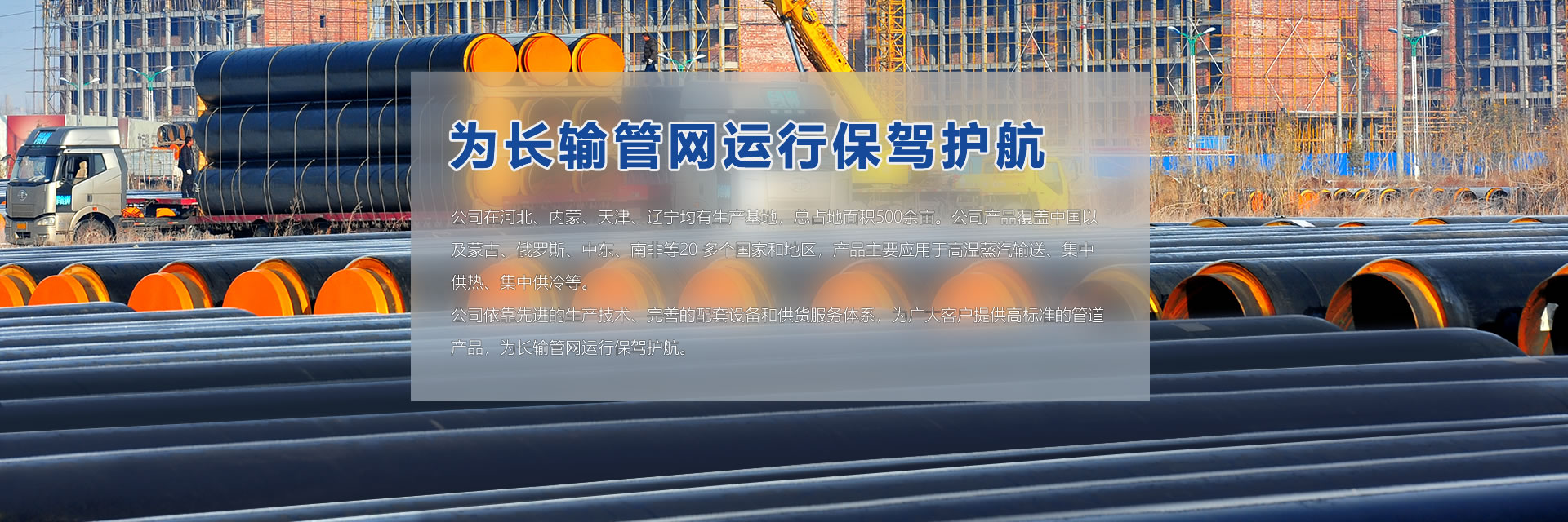 公司在河北、內(nèi)蒙、天津、遼寧均有生產(chǎn)基地,總占地面積500余畝。公司產(chǎn)品覆蓋中國以及蒙古、俄羅斯、中東、南非等20 多個國家和地區(qū),產(chǎn)品主要應(yīng)用于高溫蒸汽輸送、集中供熱、集中供冷等。 公司依靠先進的生產(chǎn)技術(shù)、完善的配套設(shè)備和供貨服務(wù)體系,為廣大客戶提供高標準的管道產(chǎn)品,為長輸管網(wǎng)運行保駕護航。